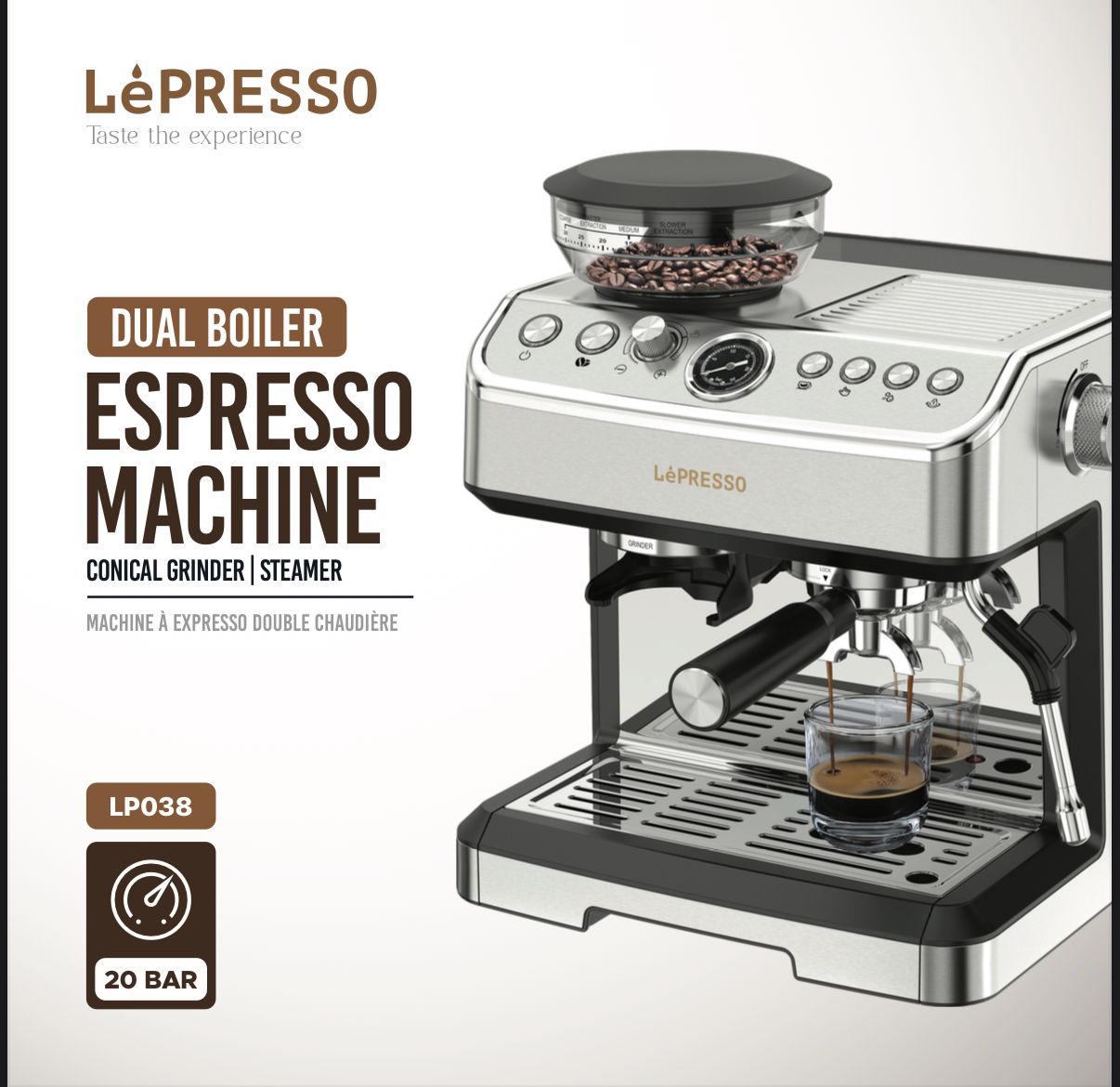 Lepresso Espresso Machine Conical Grinder & Steamer
